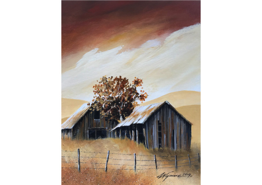 Barn in Sunset  -  18” x 24”  Acrylic on Canvas